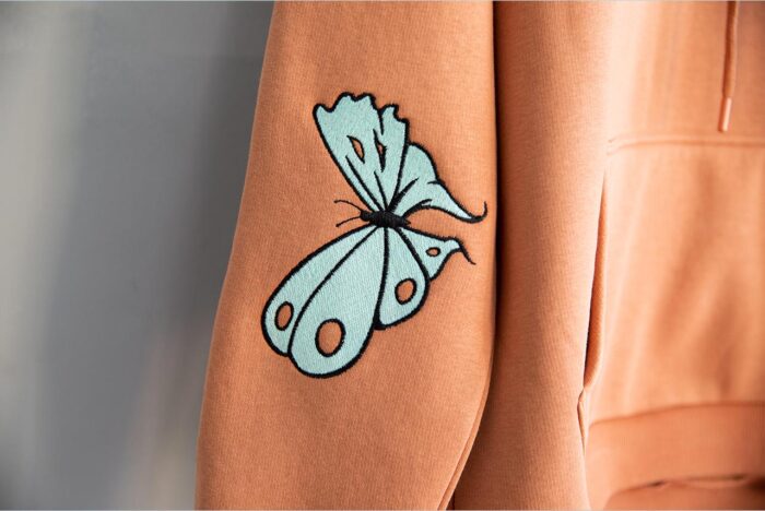 AUS BAUMWOLLMISCHGEWEBE, MIT AUFFÄLLIGEN STICK AUF DER RECHTEN SEITE DES ÄRMELS, AUF DER KAPUZE SOWIE AUF DER VORDERSEITE.