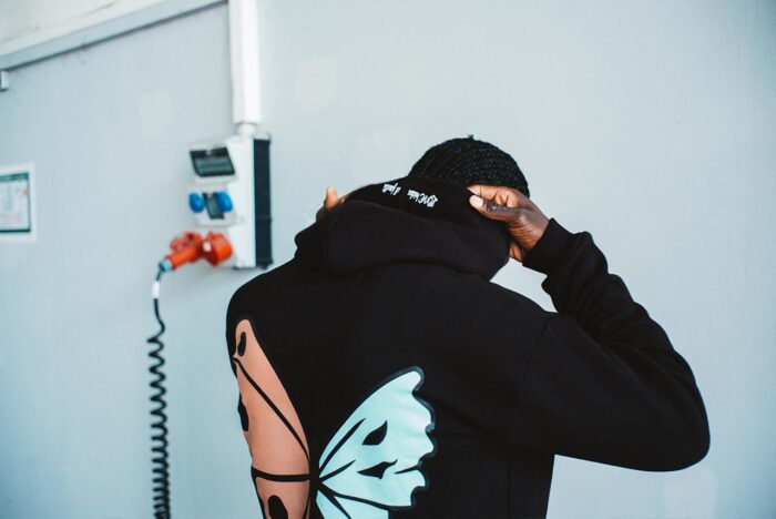 AUS BAUMWOLLMISCHGEWEBE, MIT AUFFÄLLIGEN DRUCK AUF DER RÜCKSEITE, GESTICKT AUF DER KAPUZE SOWIE AUF DER VORDERSEITE.